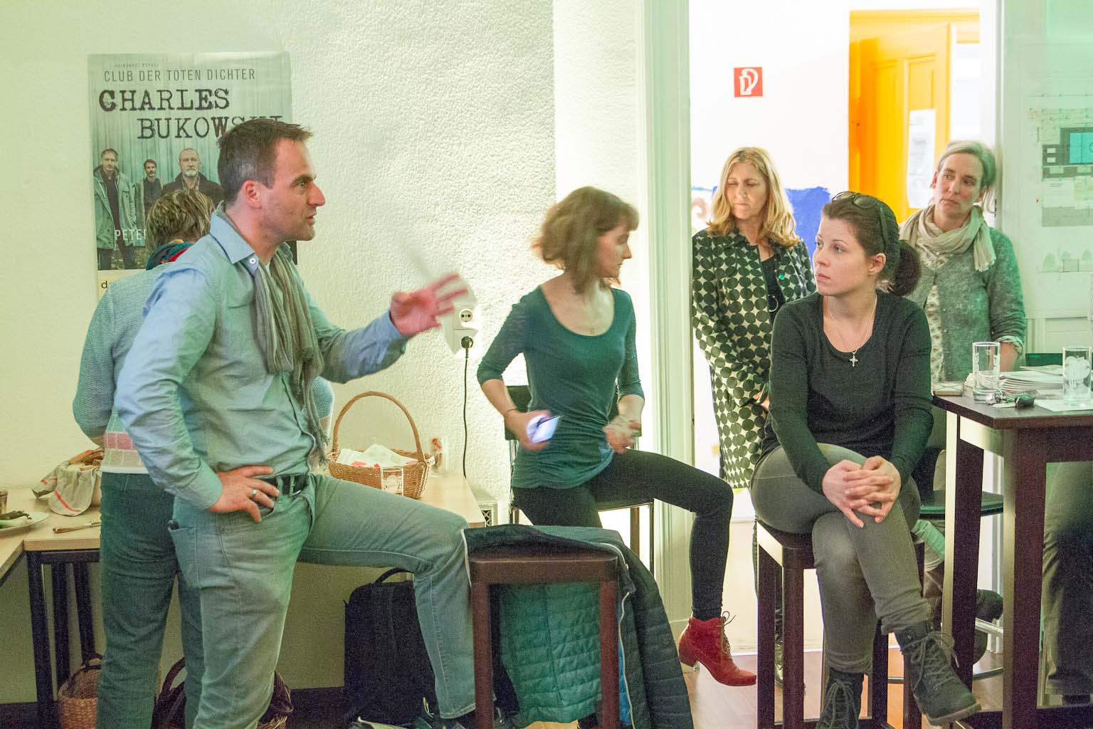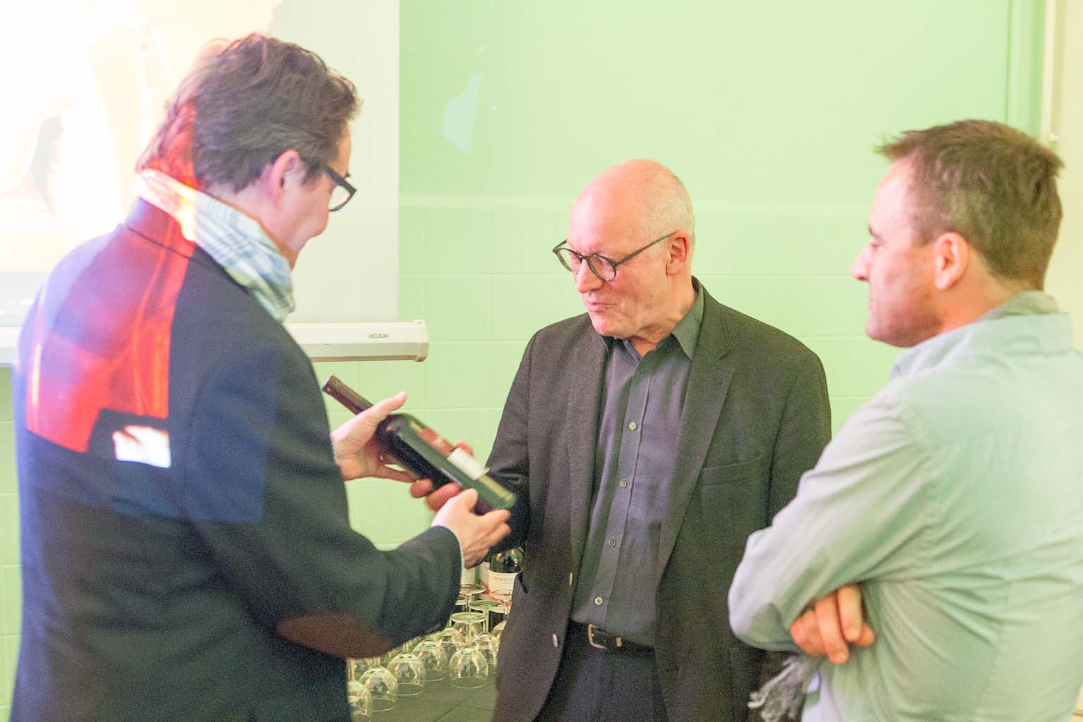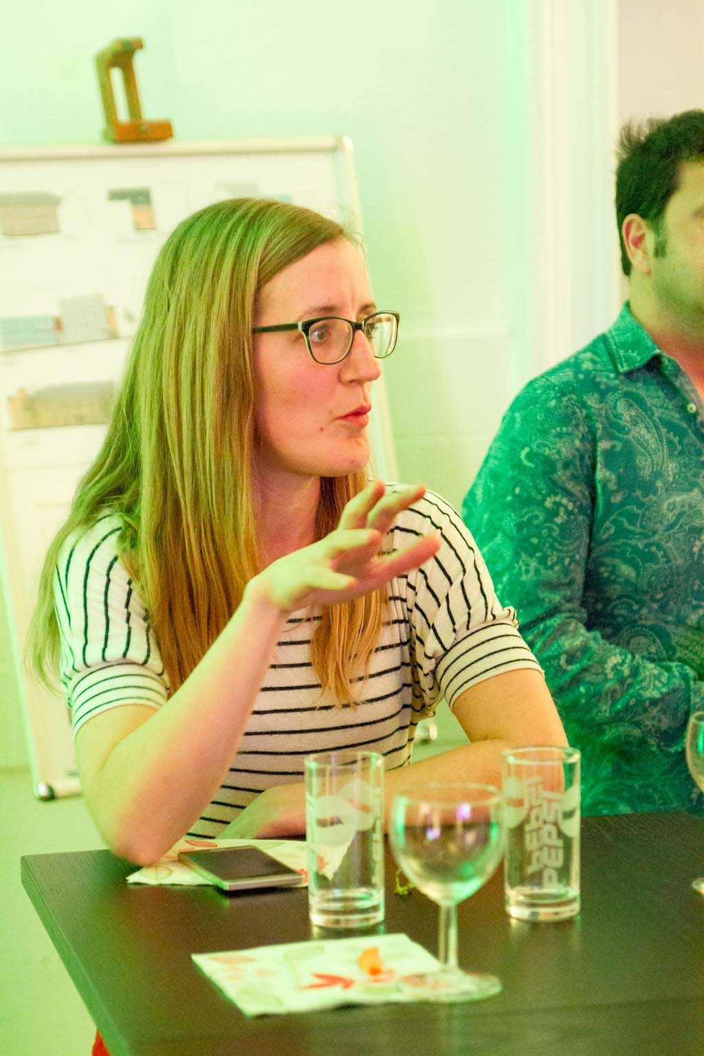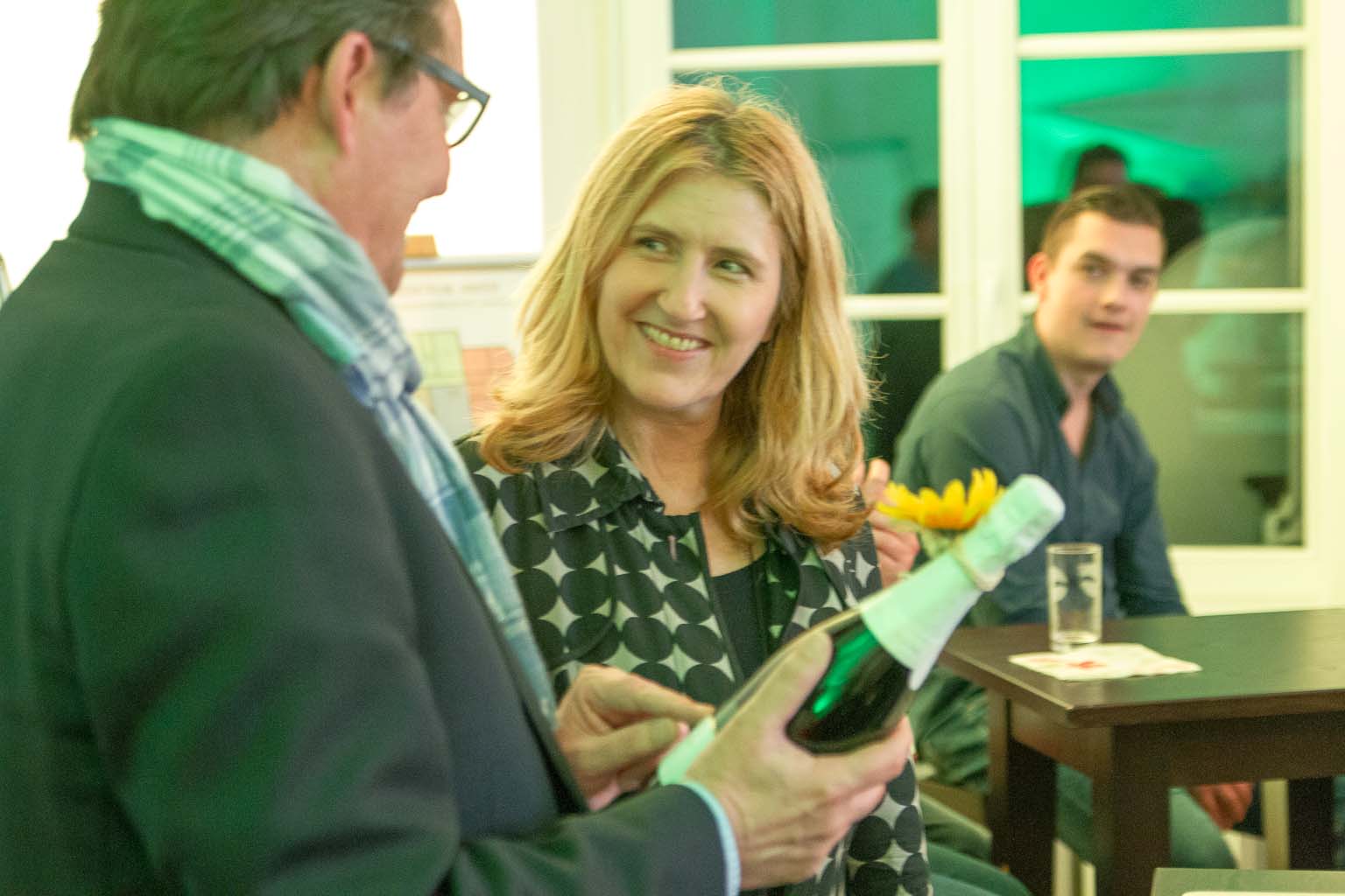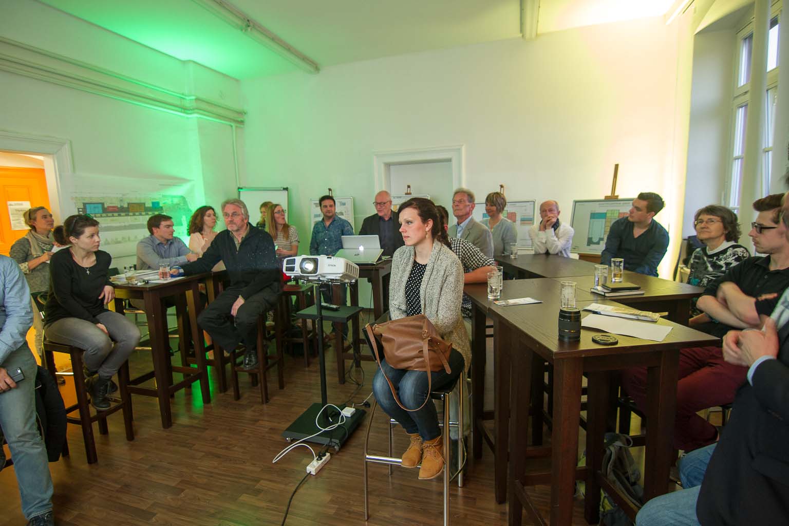 Vor dem Rundgang durch den Interimsstandort des Anker e.V. gab diesmal Maike Steuer einige Informationen zur „Nacht der Kunst“ bekannt. Danach wurden die gesammelten Eindrücke wie gewohnt bei Buffet und Bar ausgetauscht und diskutiert.
