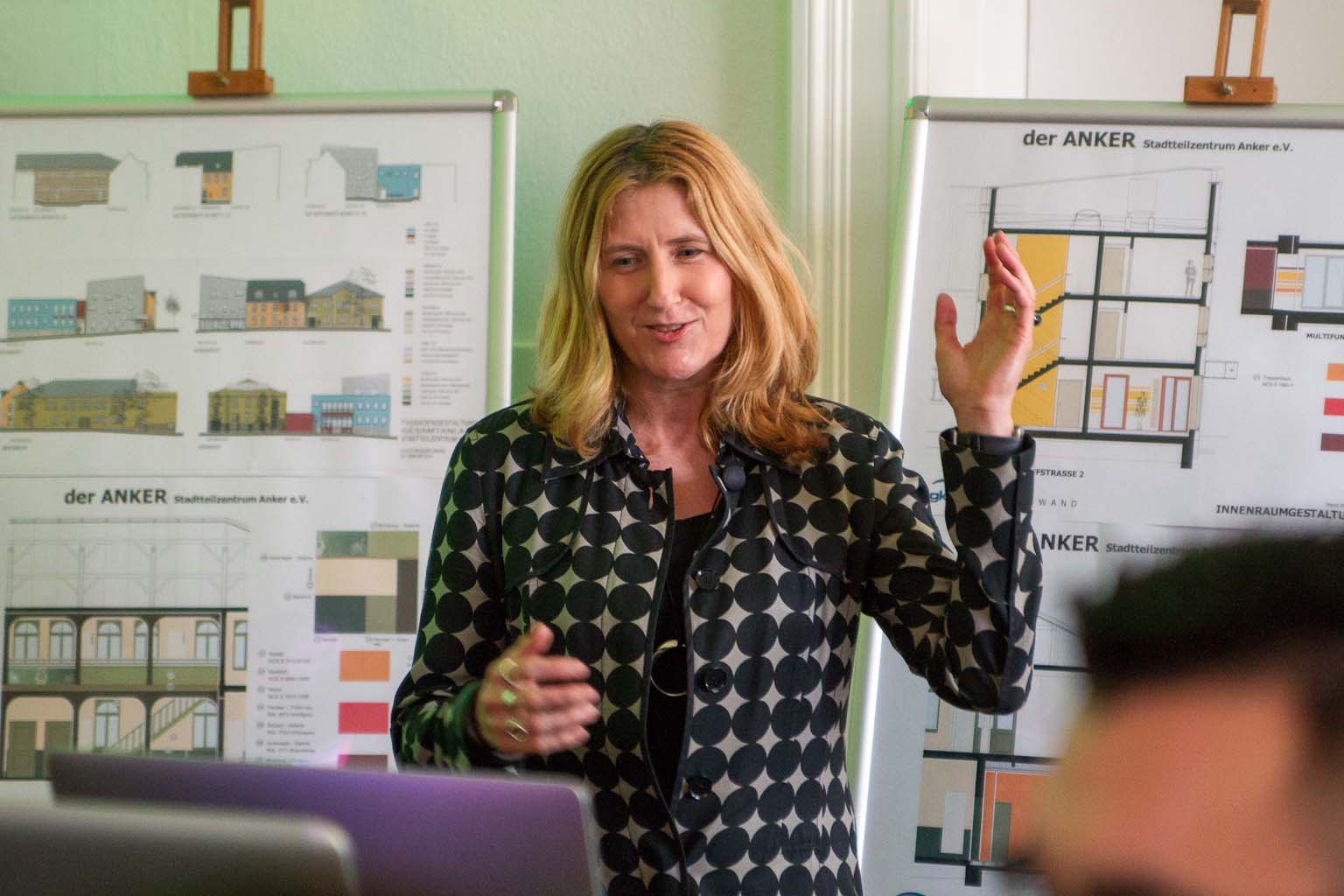 Der 13. Gründer- und Unternehmertreff Georg-Schumann-Straße führte die Netzwerker zu einer starken Institution mit langer Geschichte: dem „Anker“. Der Anker ist Veranstaltungsort, Kulturzentrum aber auch Ort der Begegnungen und des Wirtschaftens. Heike Engel gab als Geschäftsführerin Einblicke in die Aktivitäten und auch in die Gefühlswelt der vielen Beteiligten. Denn in Kürze steht ein ganz besonderer Moment bevor. Der Anker kehrt mit dem Umzug an alte Wirkungsstätte „nach Hause“ zurück. Die aktuellen Räumlichkeiten am Interim-Standort werden nur übergangsweise genutzt, was mitunter einen erheblichen Aufwand bedeutet. Die Organisation von Konzerten führte die Betreiber fort, indem andere Veranstaltungsorte gemietet und bespielt wurden. Ohne diesen Kraftakt wäre es kaum möglich gewesen, die bestehenden Kontakte, das Netzwerk und auch den eigenen Namen im Gespräch zu halten.