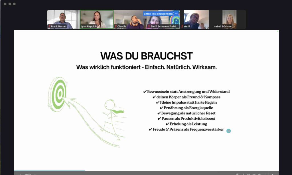 Mit Lynn Rappich erlebten die Teilnehmenden einen Impuls voller Aha-Momente, Praxisübungen und ehrlicher Selbsterkenntnis. Statt mehr Disziplin, Planung und Optimierung drehte sich alles um eines: Verbindung zu sich selbst.