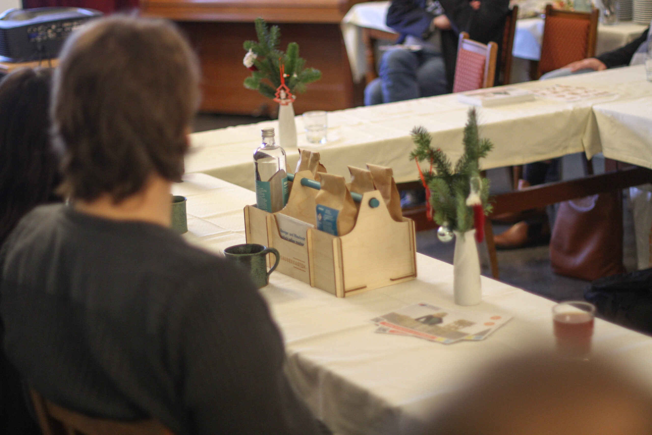 Jeanette Schmidt und Henriette Grewling stellten den Sauberkasten vor. Eine umweltverträgliche Alternative zum Standardprogramm der meisten Haushalte in Sachen Reinigungsmittel. In verschiedenen Varianten ist ihre Zusammenstellung einzelner Chemikalien samt Rezepte erhältlich. Der Vorteil: Man weiß genau, was drin ist und kann dabei auch noch einiges lernen – zum Beispiel mit Kindern.