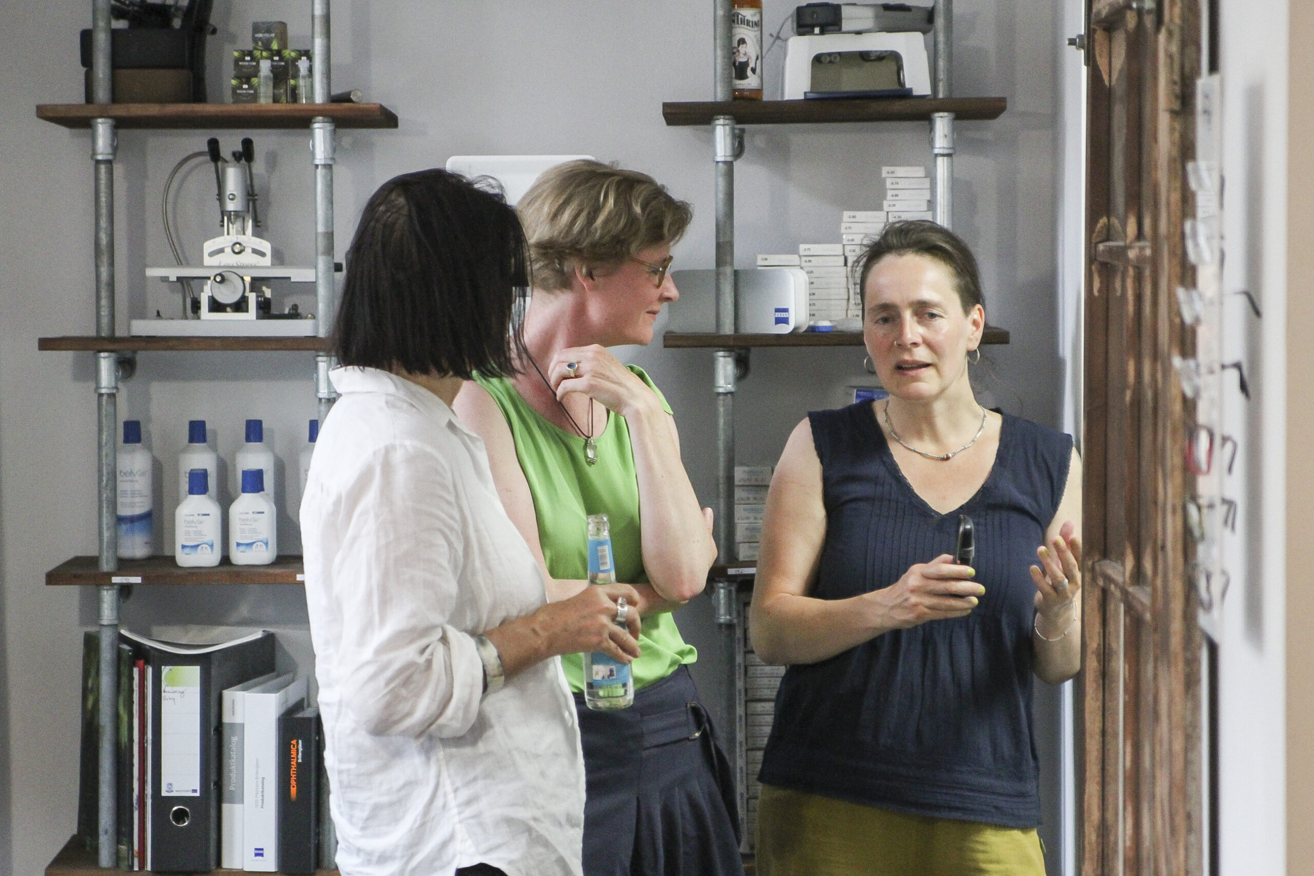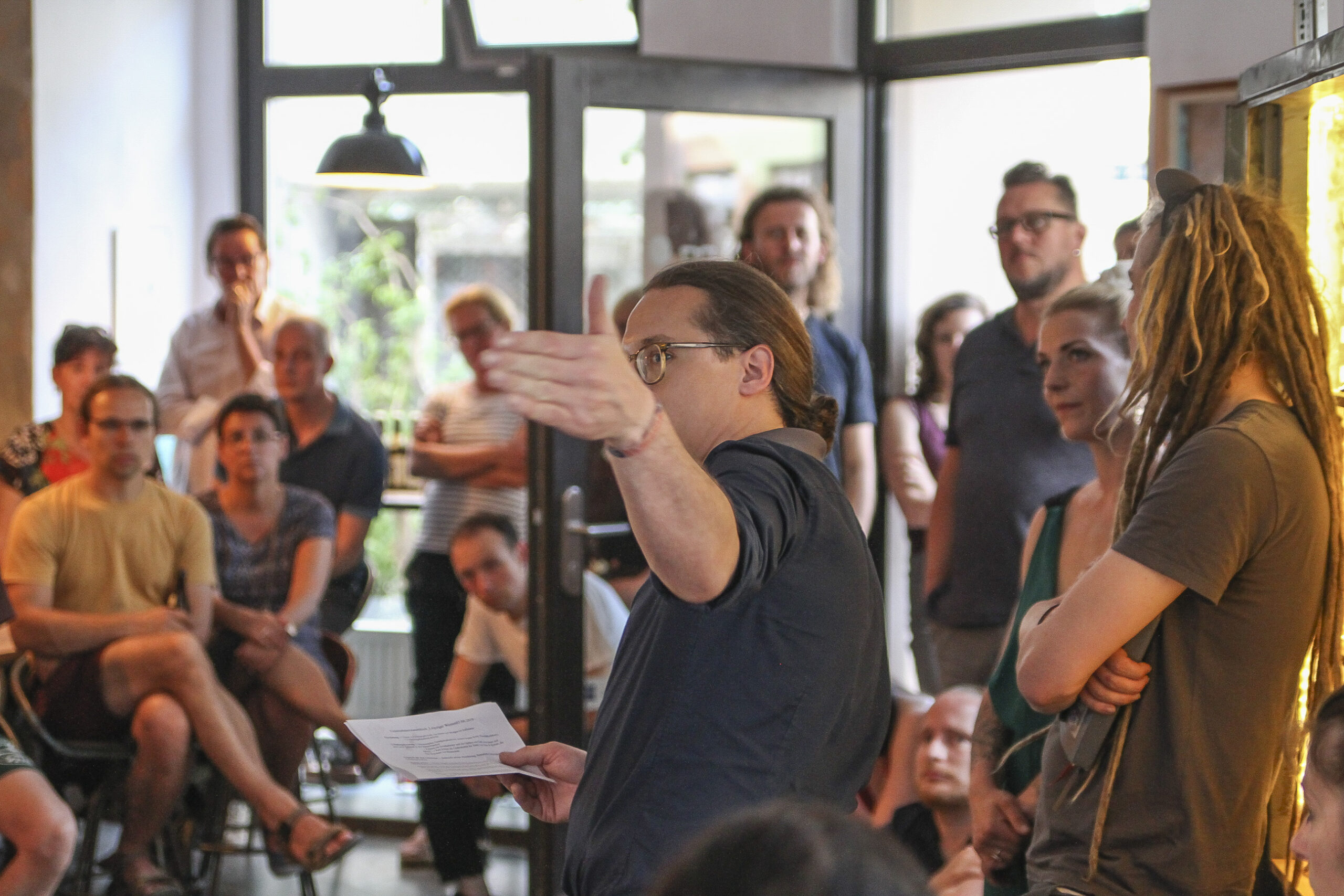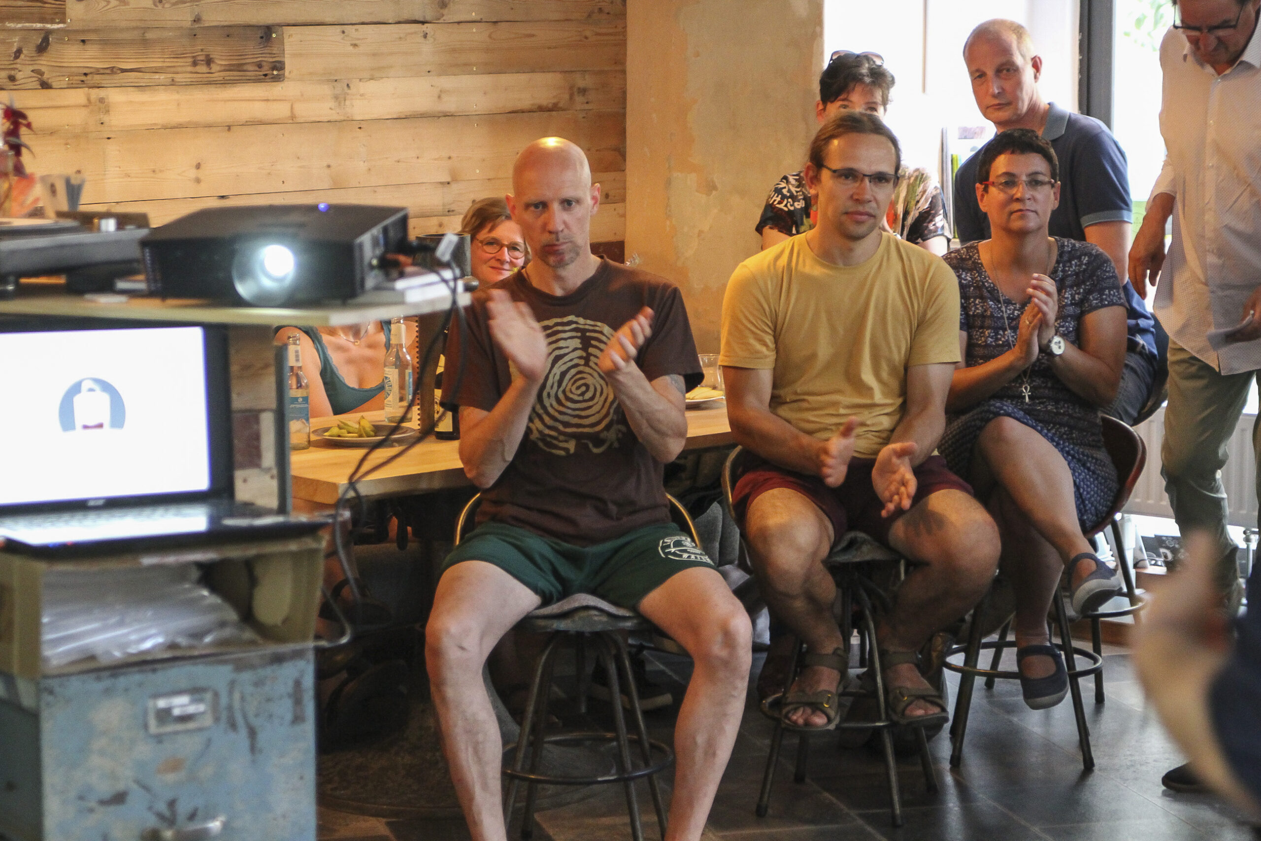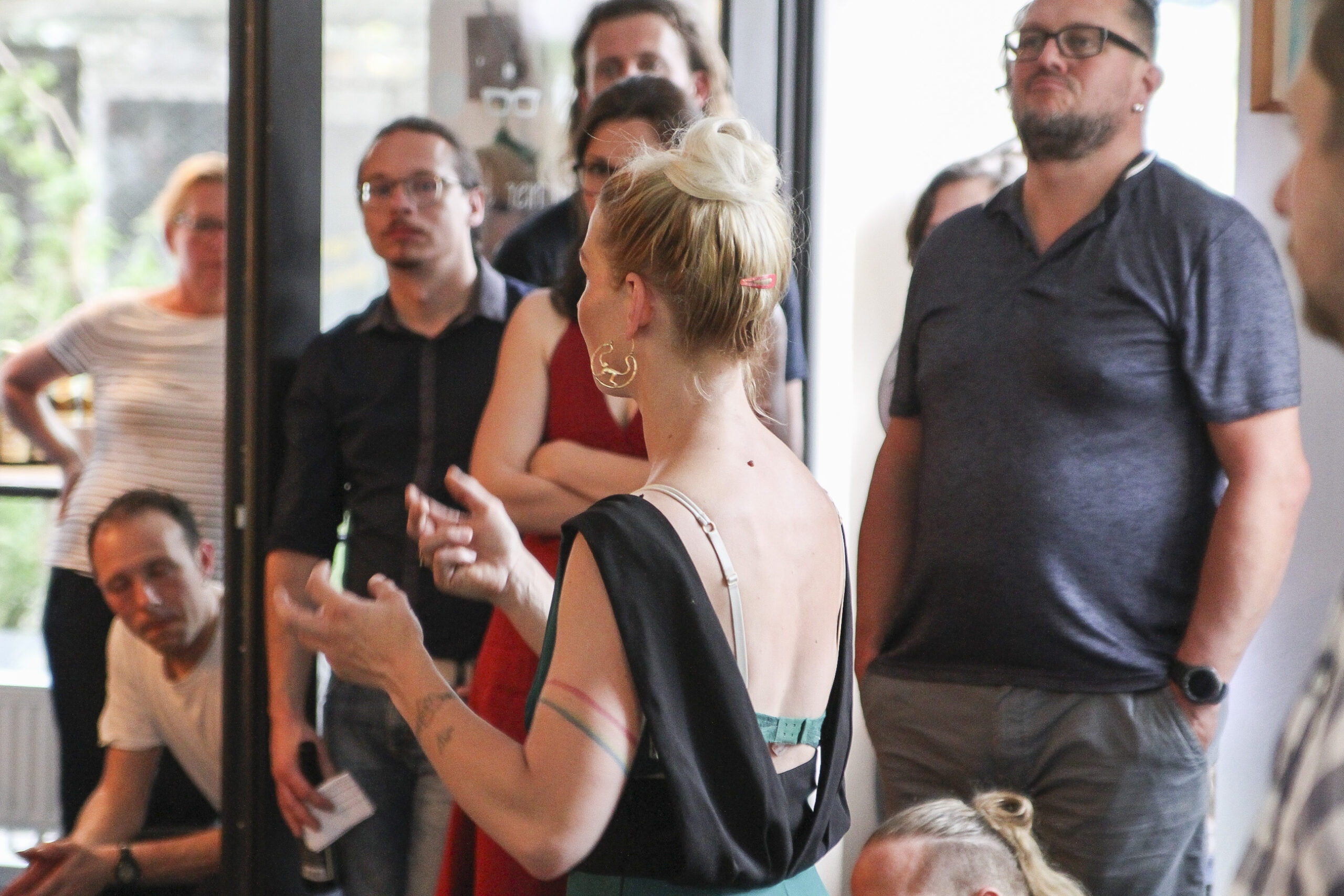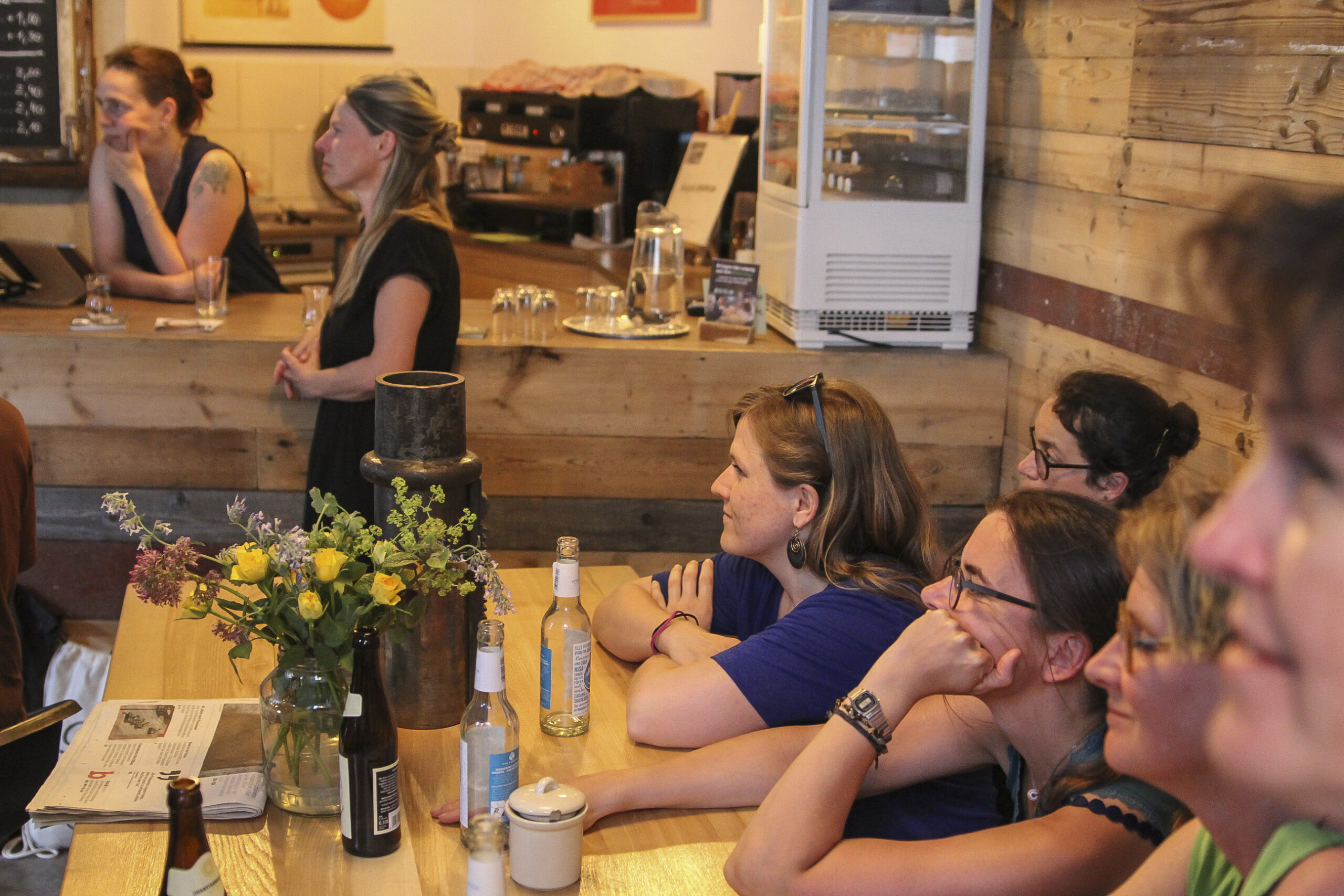 Trotz reichlich sommerlichen Temperaturen fanden sich mehr als 30 Teilnehmer zum Netzwerken bei Glas & Bohne. Denn einen Blick hatten die meisten bislang nur von außen auf das ungewöhnliche Optiker-Café geworfen. Felix Frenzel und sein Compagnon Christoph erzählten ihre Gründergeschichte. Ein kurzer, aber tiefer Einblick, wie schnell aus einer Idee zur richtigen Zeit mit einer Portion Mut etwas Langfristiges entsteht. Denn ein so investitionsintensives Vorhaben mit einigen kostspieligen Anschaffungen schüttelt man nicht eben so aus dem Ärmel.
