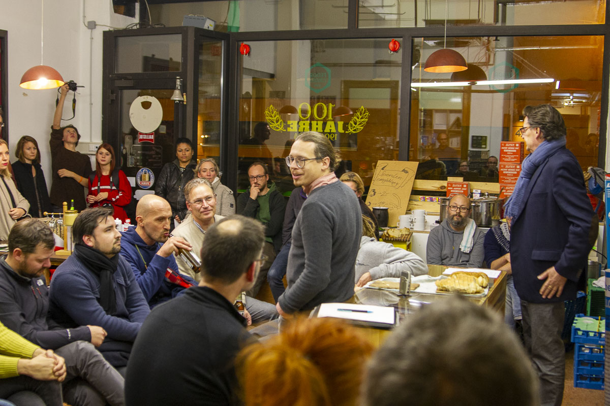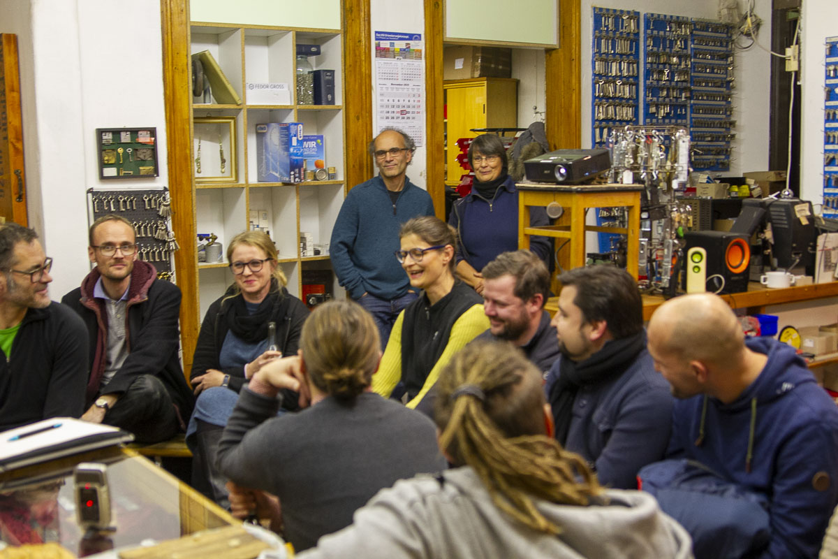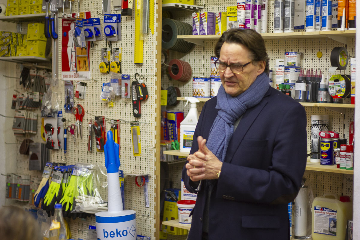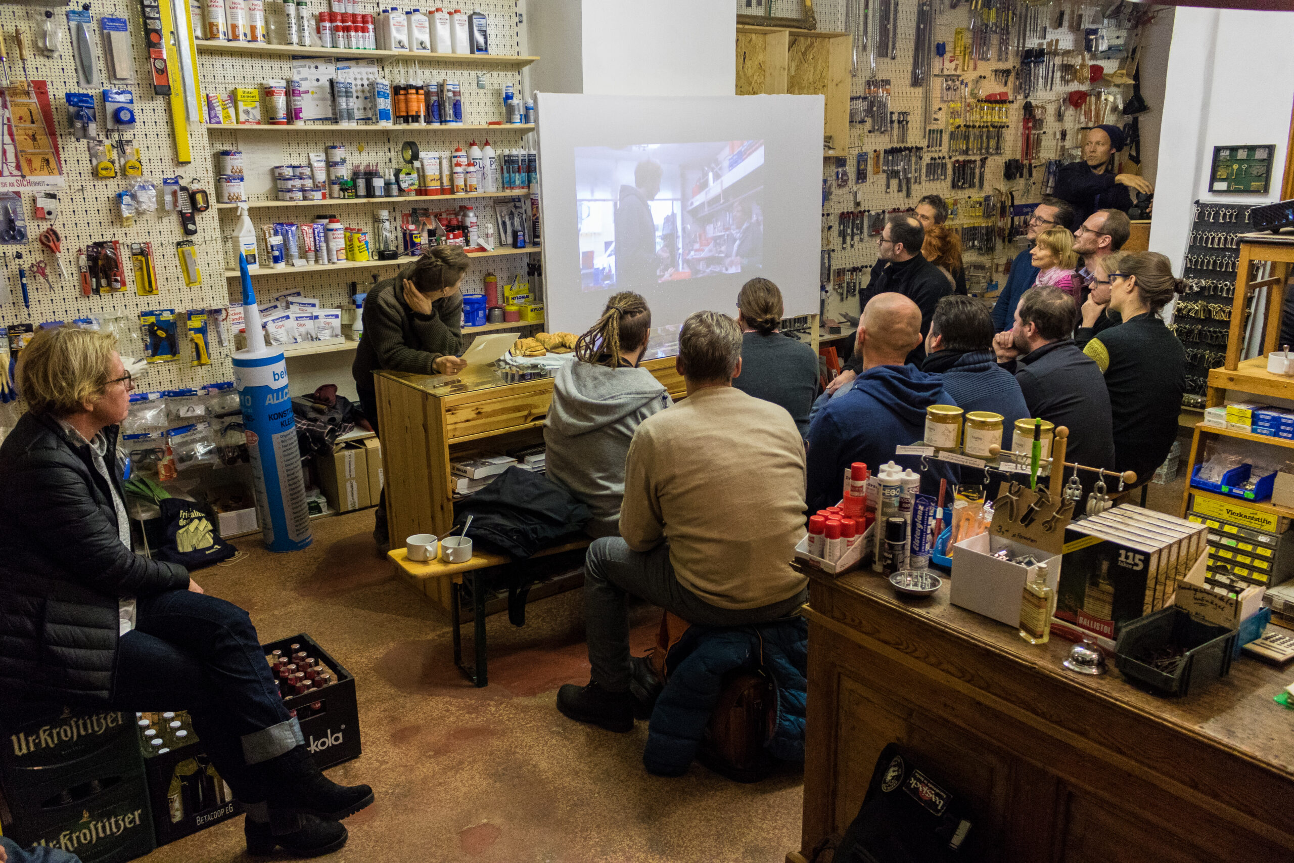 Zum Jahresabschluss des Netzwerks besuchten die Teilnehmer des Unternehmerstammtisch Leipziger Westen den alteingesessenen Eisenwarenhandel Fedor Gross an der Josephstraße zwischen Plagwitz und Lindenau. Die Gastgeber sind ein Kollektiv, bestehend aus dem für die Übernahme des ehemaligen Familienbetriebs gegründeten Verein und weiteren Unterstützern des Ladens.