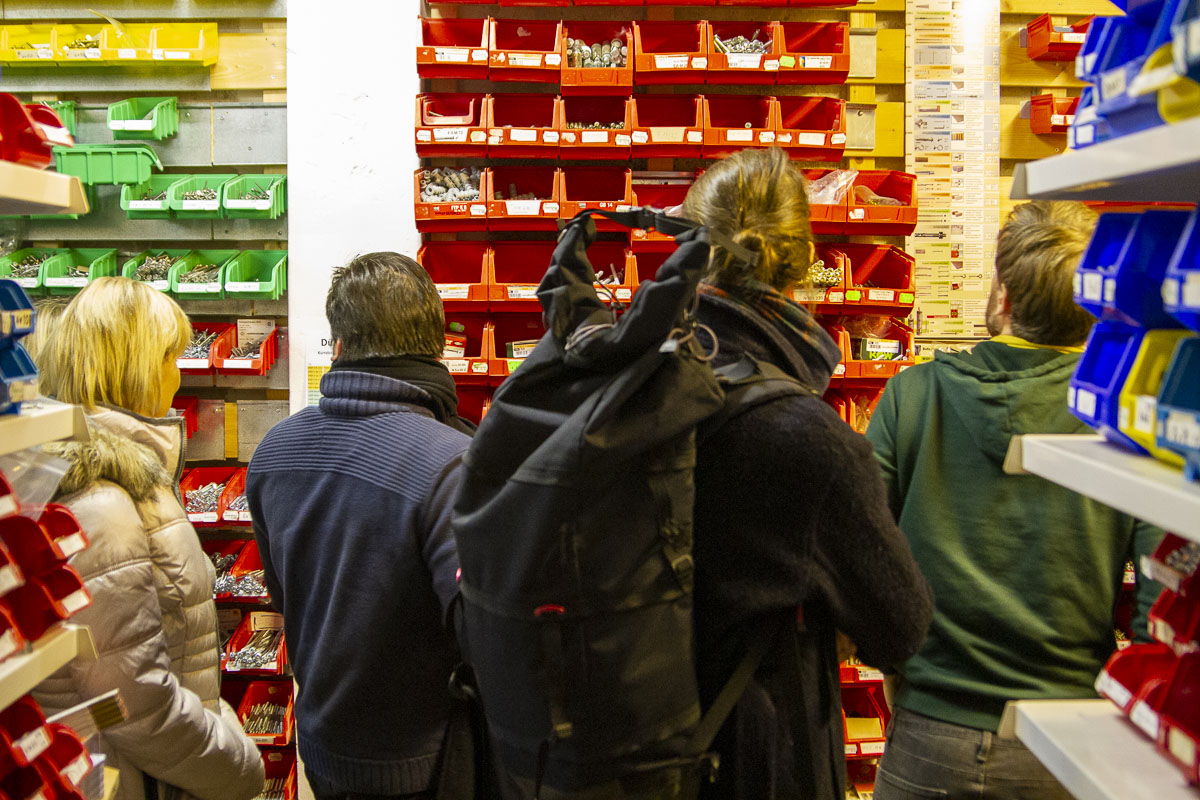 Ausgangspunkt des ungewöhnlichen Geschäftsmodells war die Aussicht, dass der gesamte Betrieb wortwörtlich in den Schrott wandert. Denn 2014 wollte die Enkelin des Gründers Fedor Gross aus Altersgründen aufhören und es hatte sich zunächst kein Nachfolger gefunden für den Laden, der mit seinem Angebot vor allem gegen die großen Baumärkte konkurrieren muss.